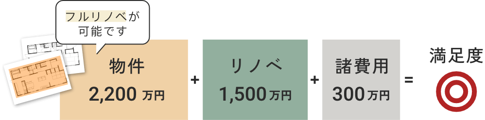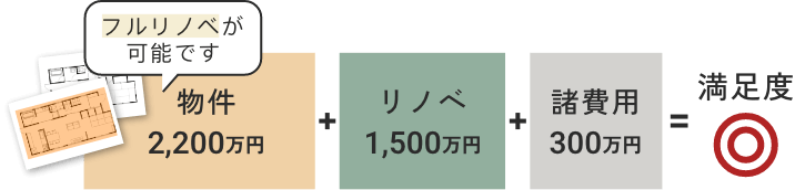 ご自宅で不動産サイトを見ていると、どうしても物件金額が高めになってしまうものです。コンサルティングを受けて、リノベーション、諸経費もかけられるバランスの良い予算配分にすることで満足度が高くなります。