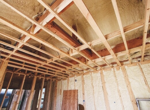 屋根裏に発泡ウレタンを吹付け高い断熱性を確保します。
