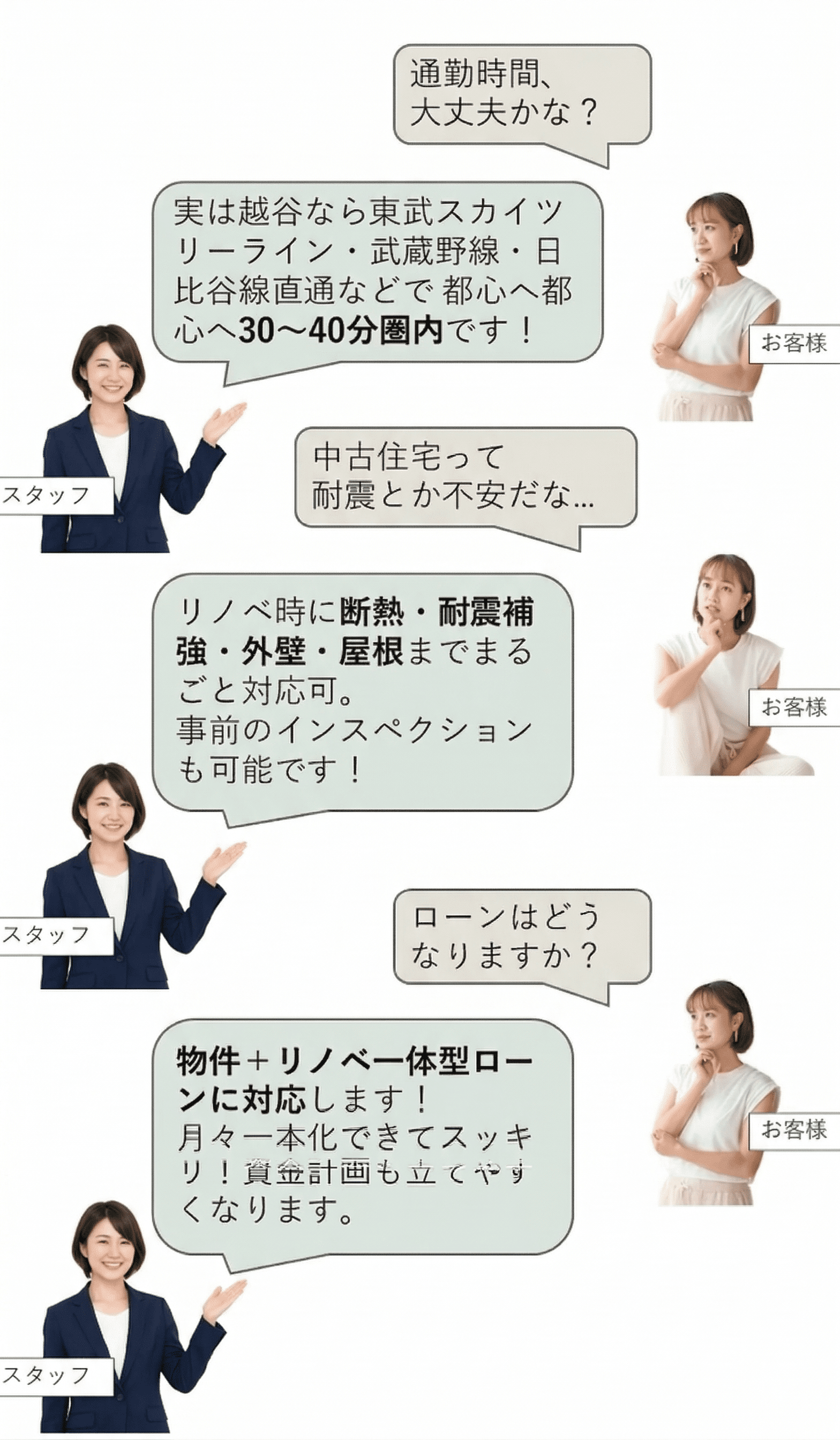 都内で中古マンションリフォーム VS アクセスの良い越谷市で『中古戸建×リノベーション』