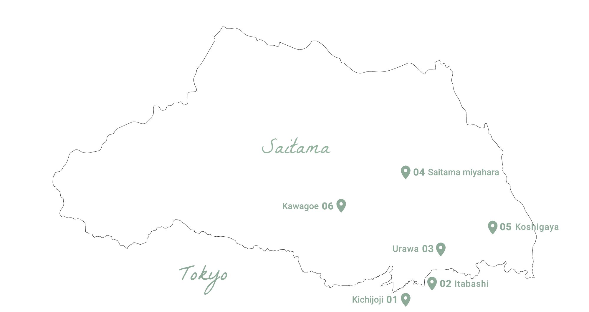 埼玉県越谷市、草加市、三郷市、八潮市、さいたま市緑区(美園)、春日部市、松伏町、杉戸町、宮代町