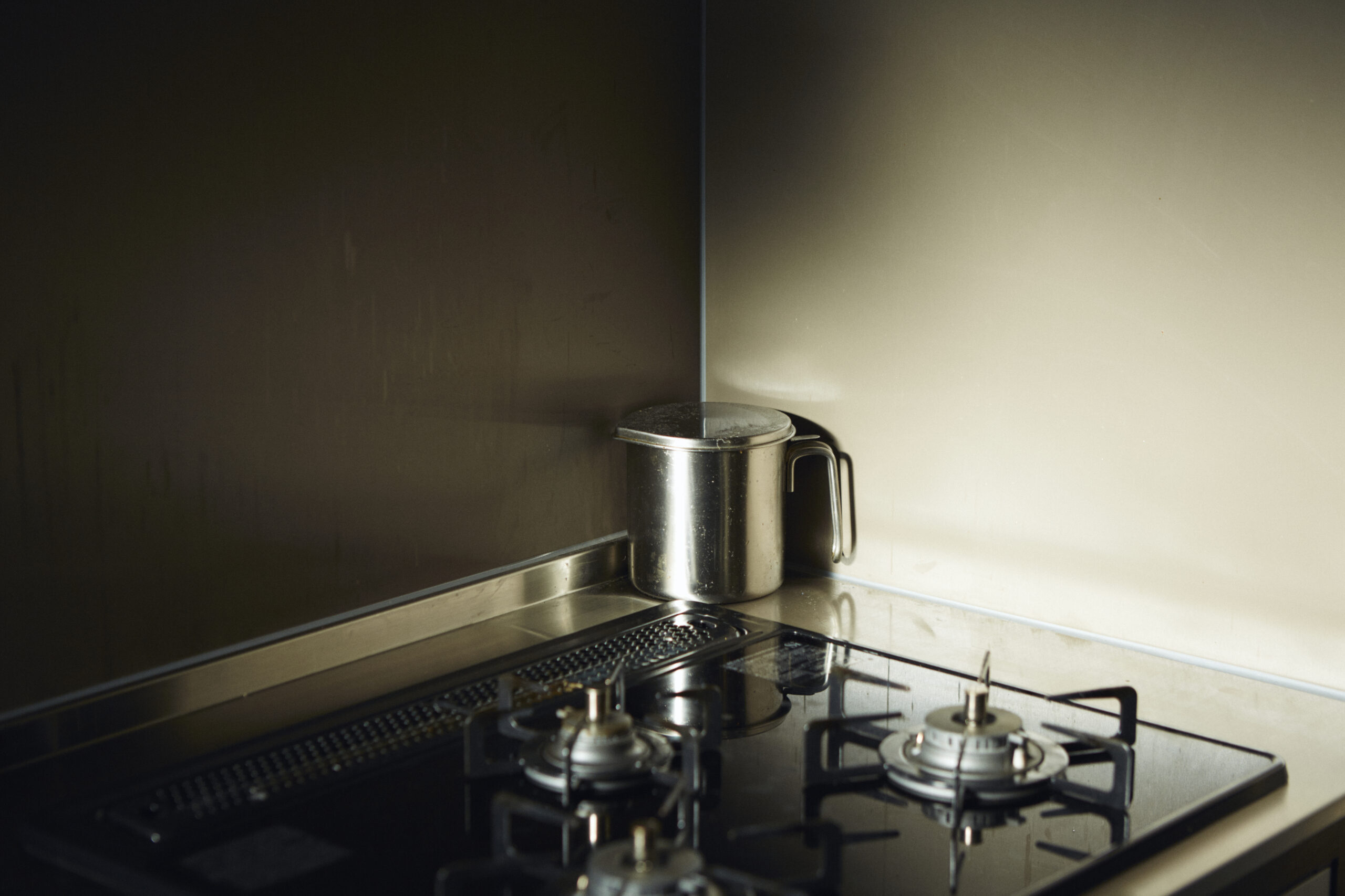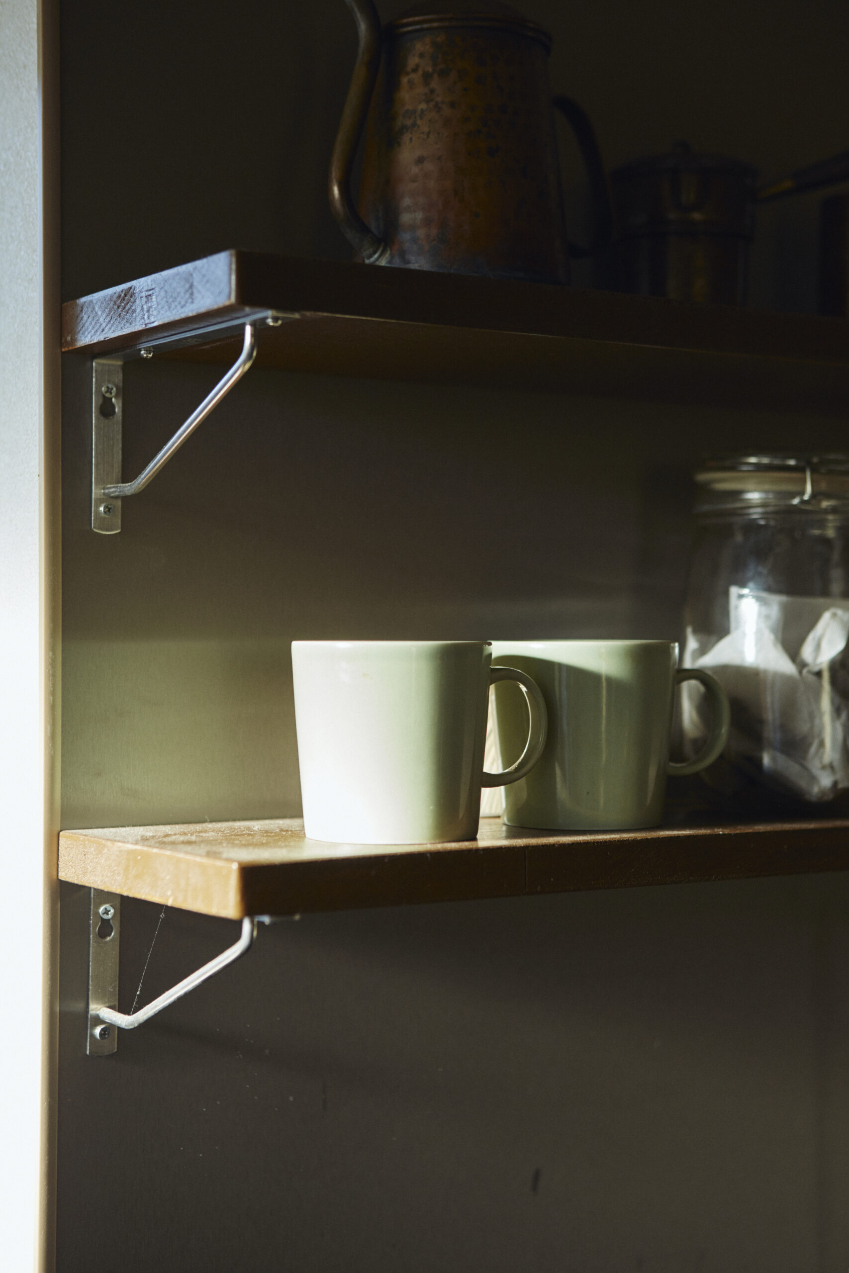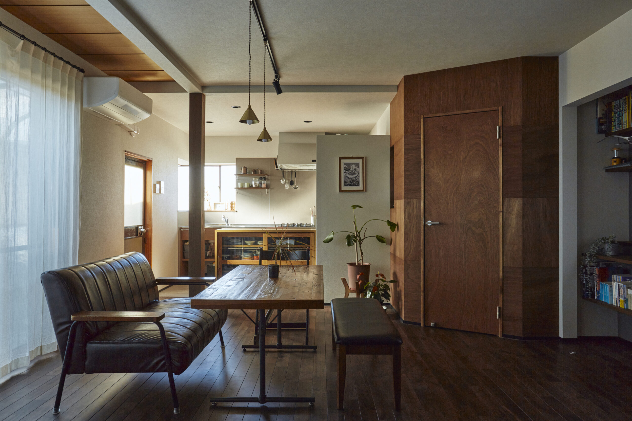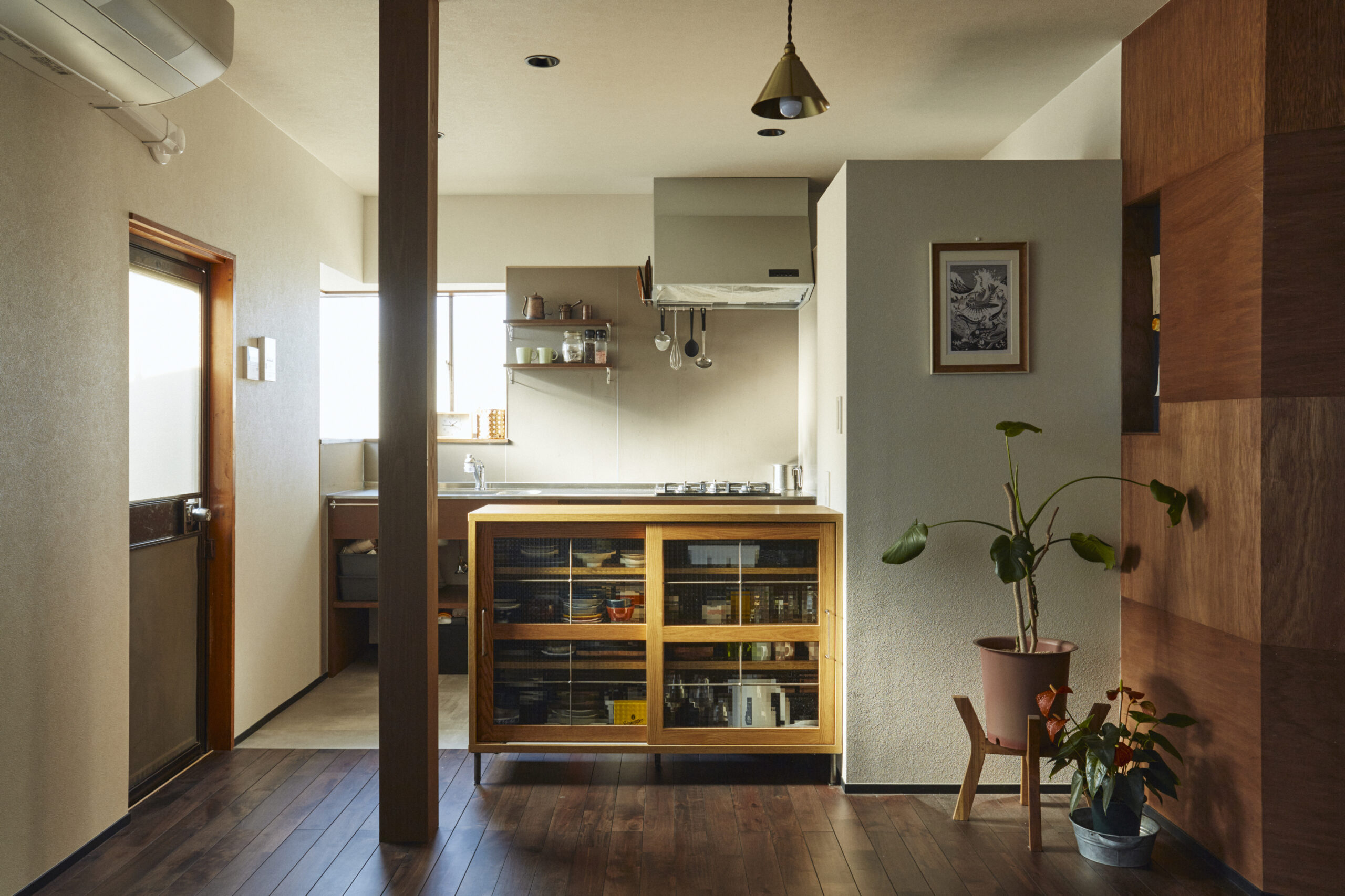 広めのダイニングにはちょっとした壁面収納を作りました。リビング空間は元の和室を活かし、畳スペース+押し入れで構成しています。