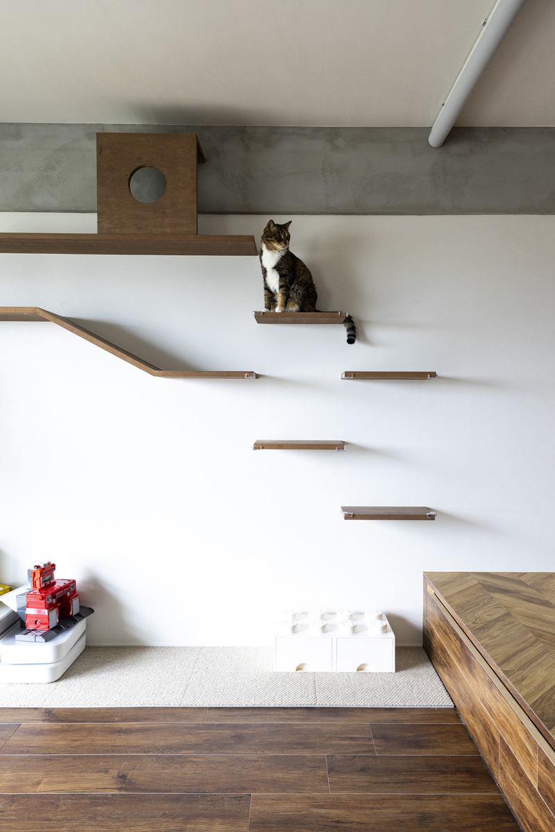キャットウォークも広い壁面に設けて、ねこちゃんものびのびくつろげます。