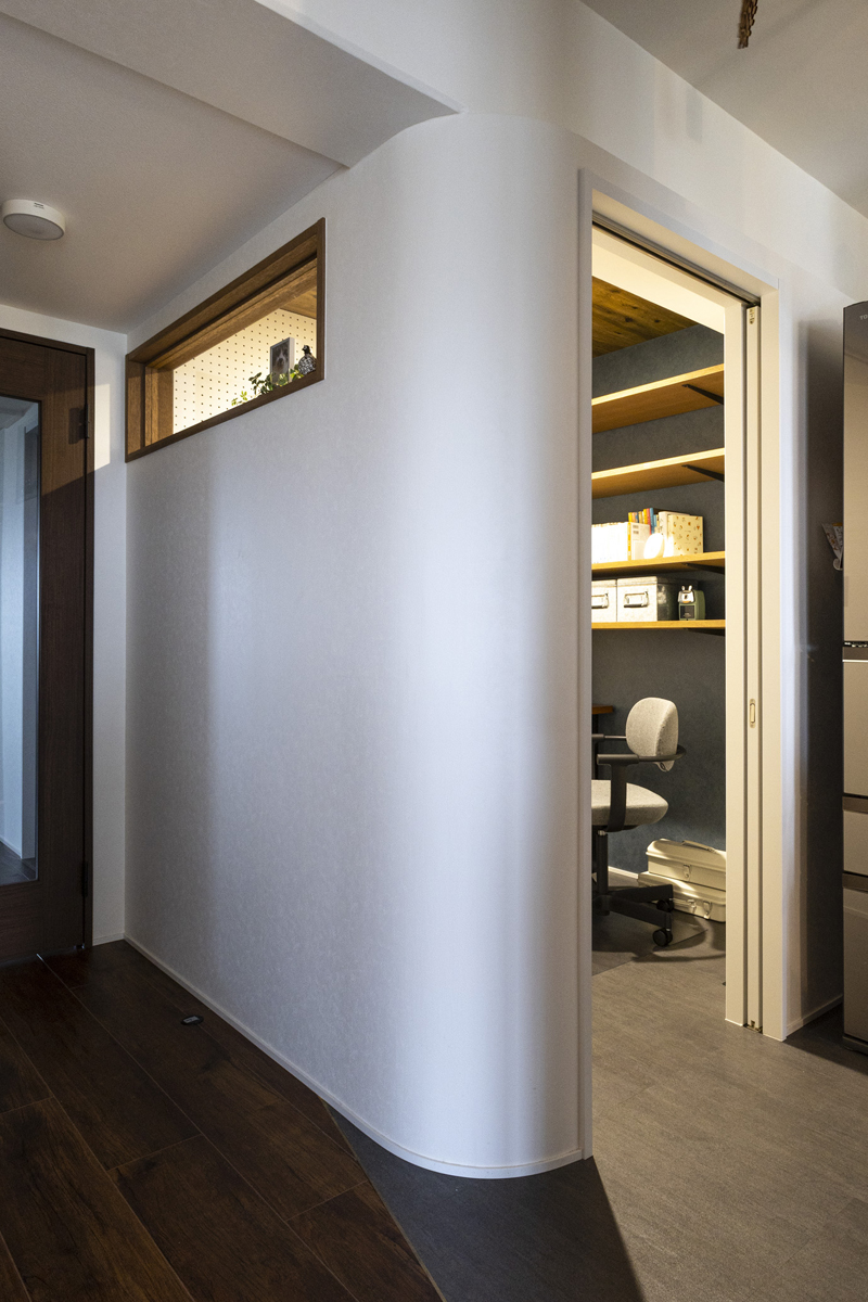 部屋の角をRにすることで圧迫感が減り、お部屋全体にやわらかさを演出。
