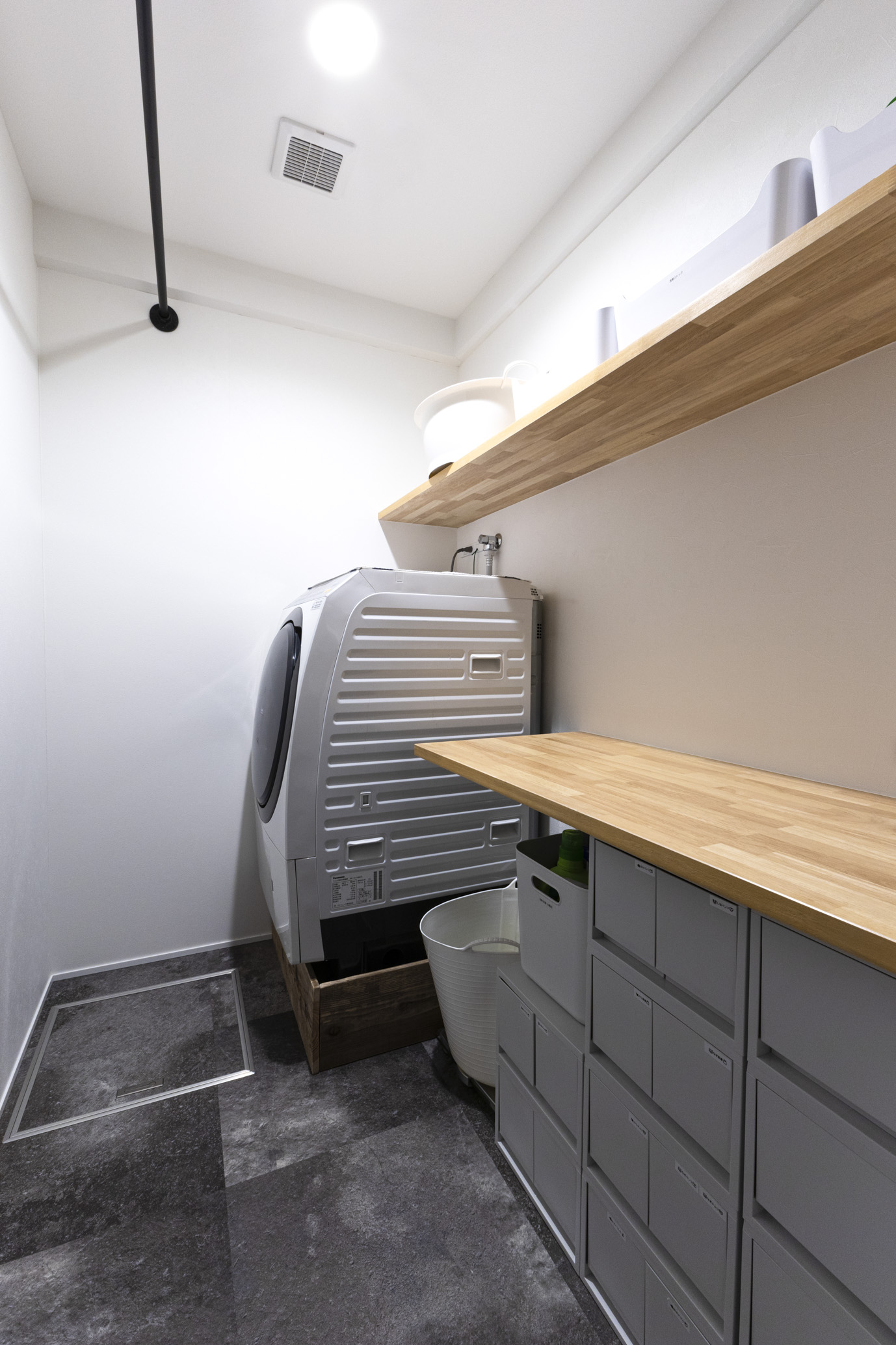 小上がりの造作収納は、よく使うお子さまのおもちゃなどは引出しにしまってすっきり。