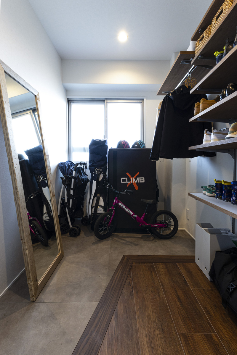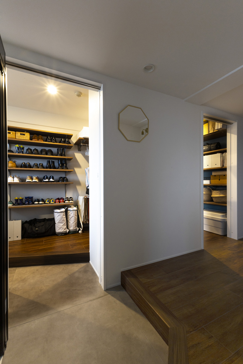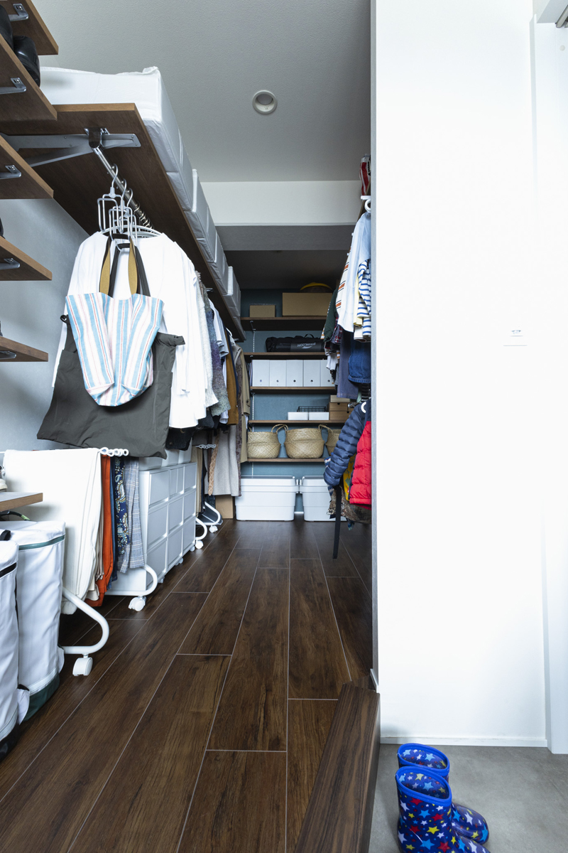 大容量の土間玄関と一続きになっているWIC。