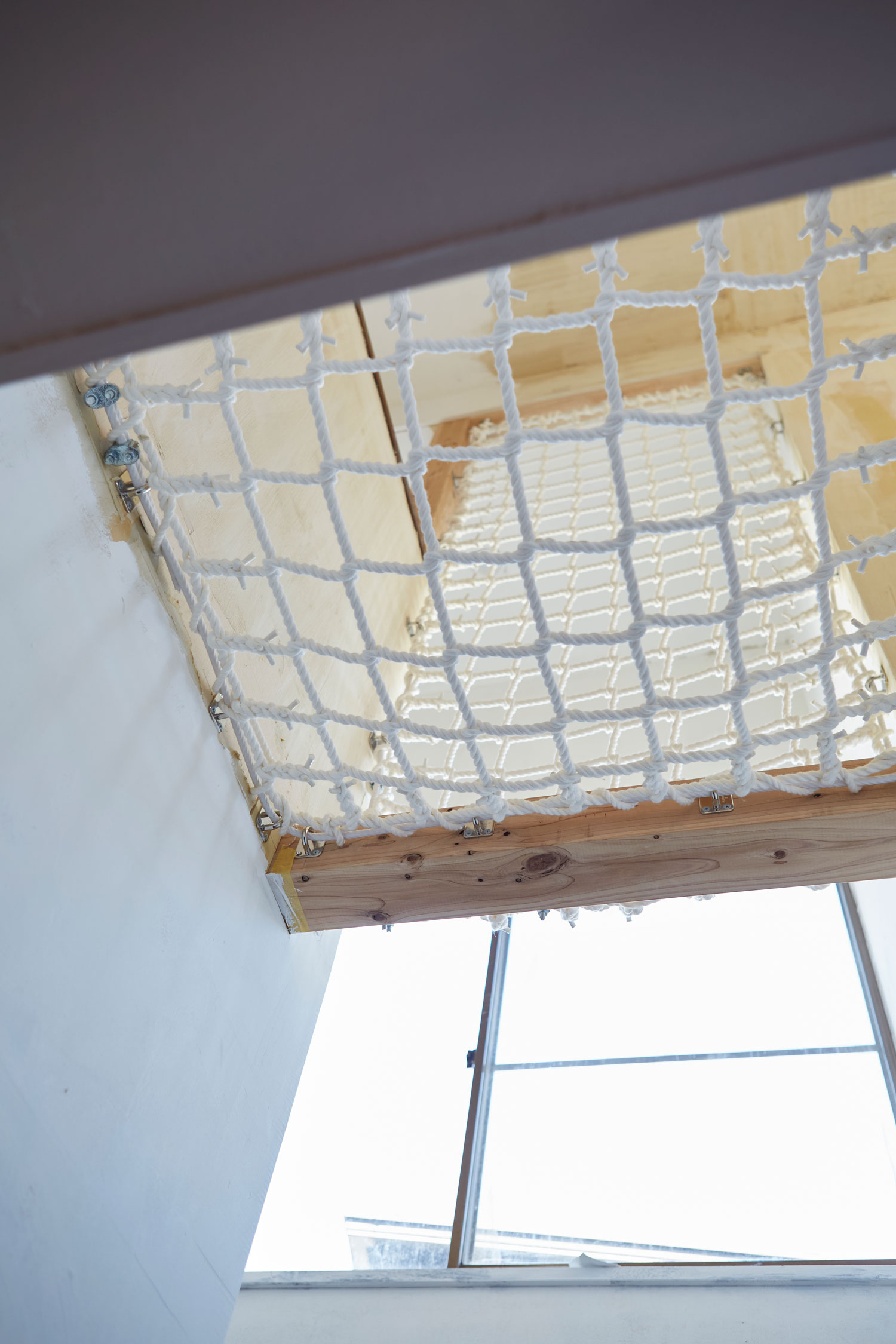 お子さまが遊べるように子供¥ども部屋にはロフト、玄関上の吹き抜けにはアスレチックネットを設置。