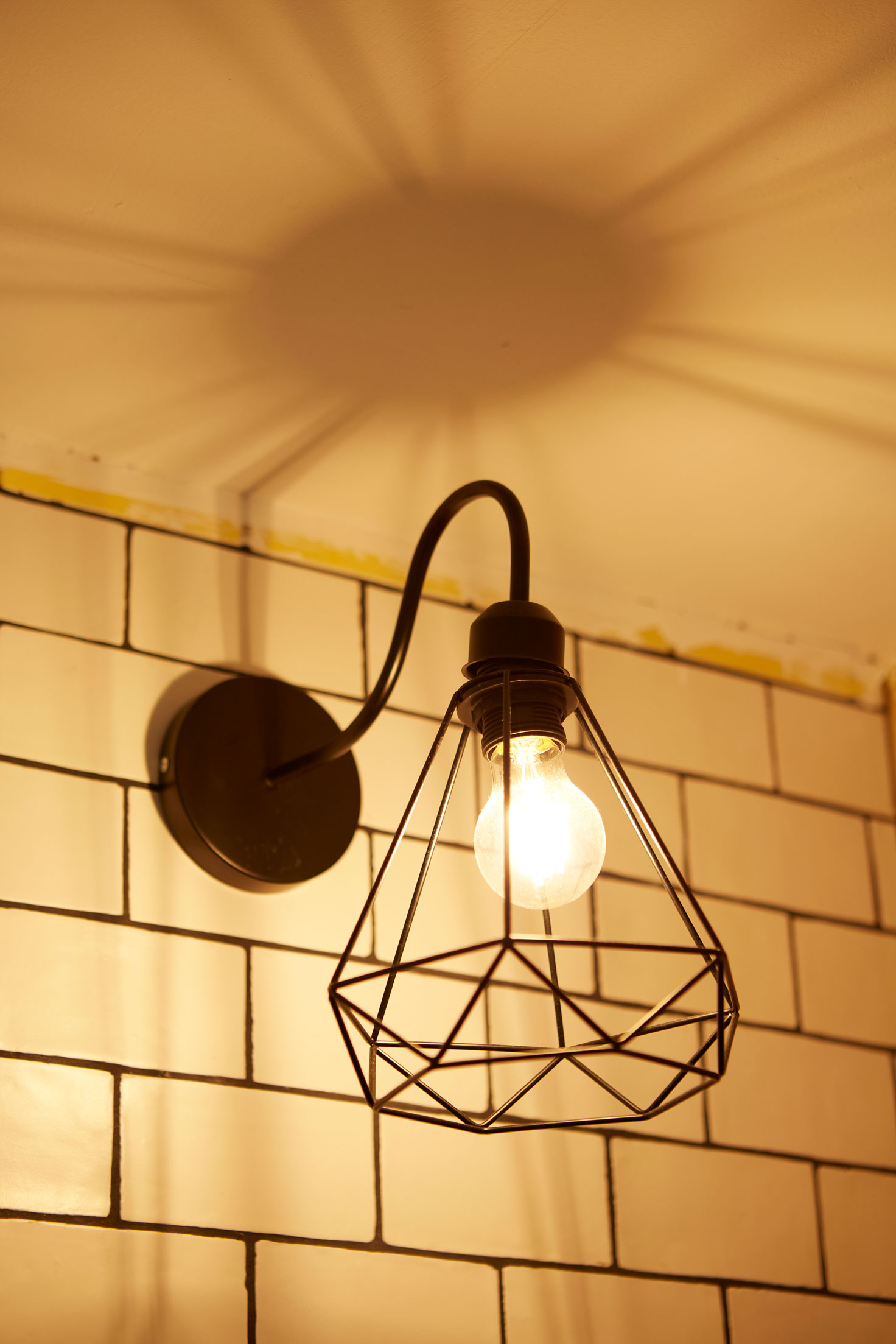 モルタル風の造作洗面台。幅が3mあり、タオルなどが収納できるように棚も造作。