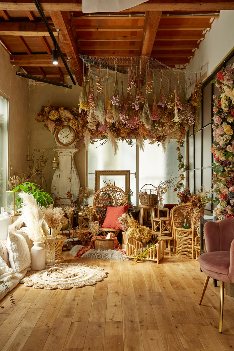 ドライフラワーいっぱいのアンティークな雰囲気にワクワクします。
