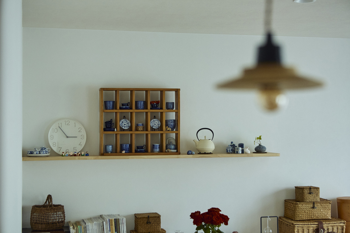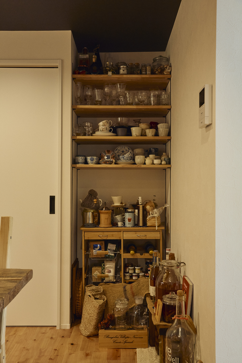 魅せる収納が好みなお施主様のご要望にお応えして、敢えて扉などはつけずにおしゃれな小物を魅せています。