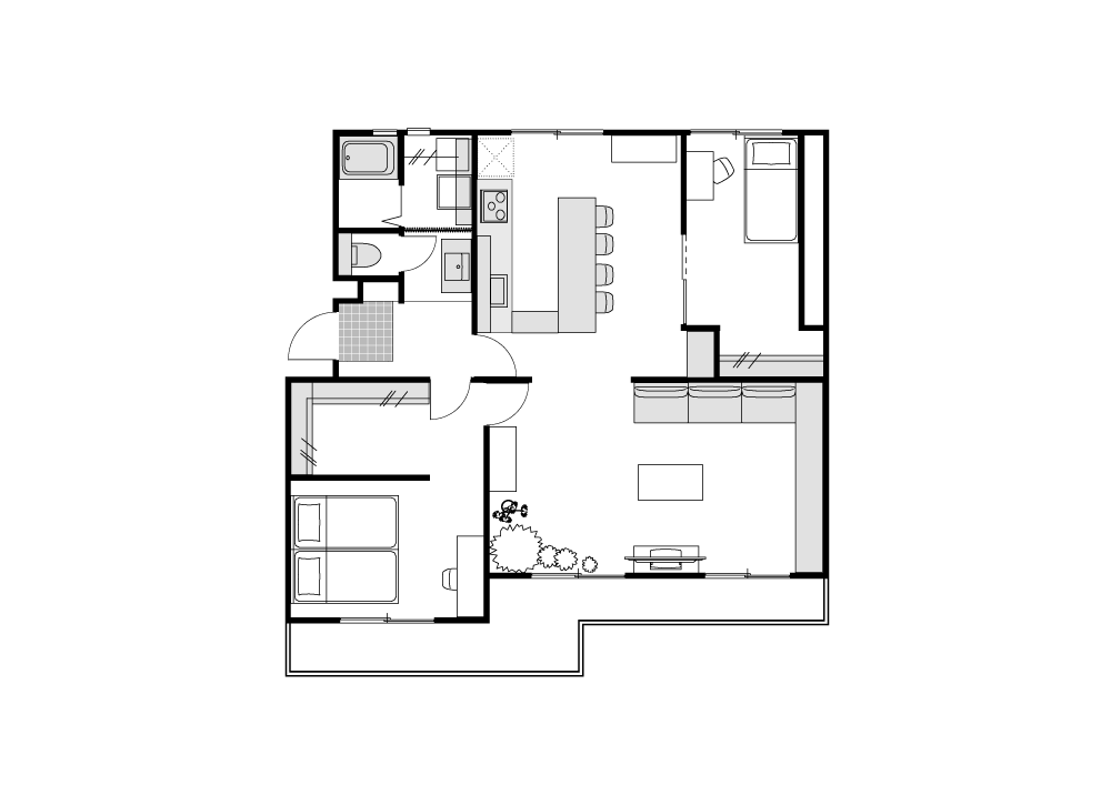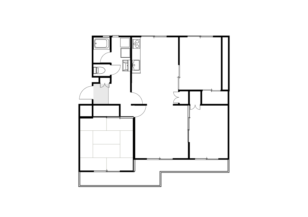 団地のため、大きな間取り変更はしませんでしたが、和室と洋室で区切られていた空間を一つの広いリビングに広げました。