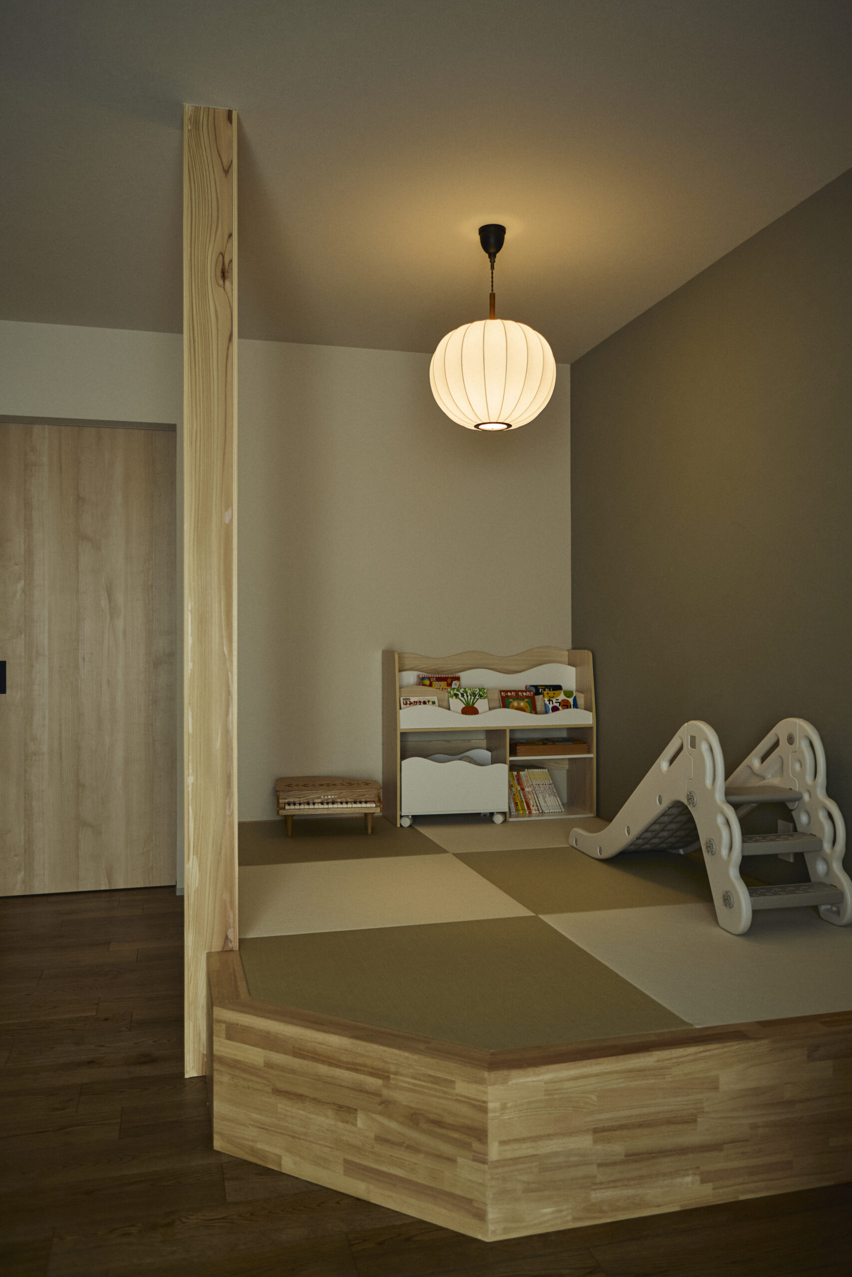 小上がりの畳スペースは、お子様の遊び場としても、座って洗濯物を畳める家事スペースとしても活躍します。