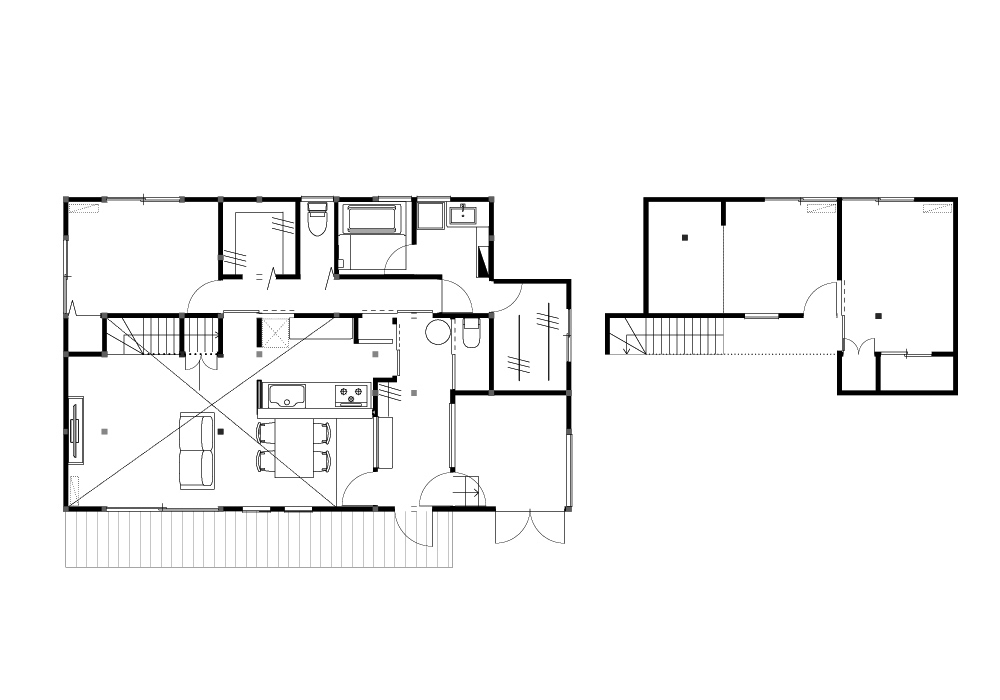 南側はLDKとガレージで、広い庭やウッドデッキとのつながりを作りました。