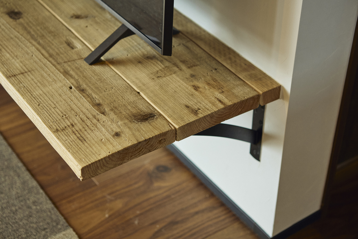 腰壁は足場板を天板とし、カウンタ―として使えるので友人や家族で集まってパーティーができるような仕様になっています。